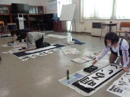 各学年の代表の人たちが、県書き初め大会に向けて休み時間に練習をしています。集中して書いています。
