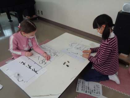 各学年の代表の人たちが、県書き初め大会に向けて休み時間に練習をしています。集中して書いています。