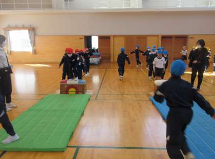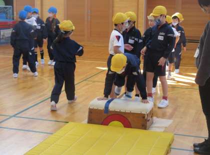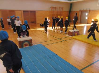 1月31日(火)1・2年 体育科「跳び箱あそび」