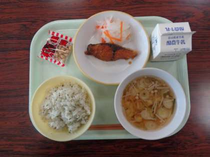 今日の献立は、菜めし すまし汁 魚の蒲焼き なます 節分豆 でしたでした。