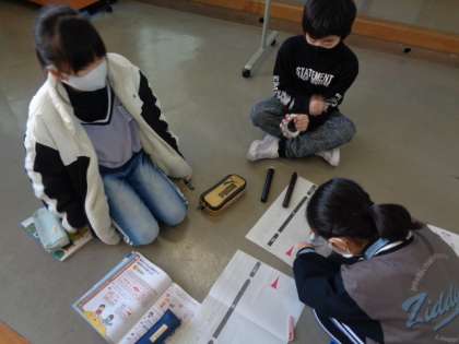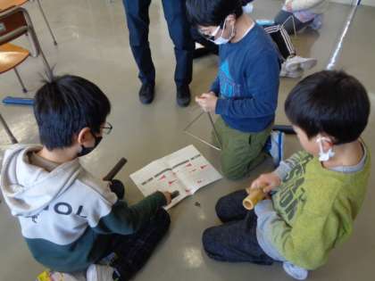 楽器の音色の組み合わせやリズムの重なりを工夫しながらリズムを考えています。