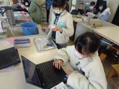 今まで学習した中で、もう一度あるいは発展的に実験したいことを行うために、計画書を書き、合格した人から実験を行っています。意欲を持って学習に挑む子供たちです。