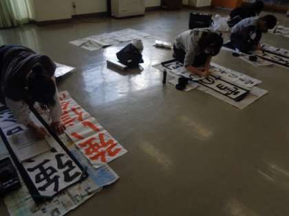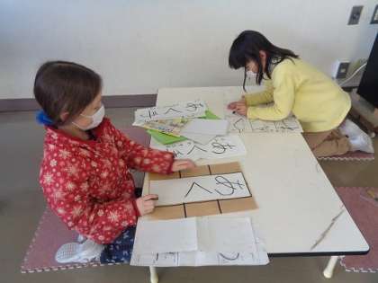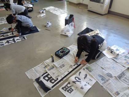 県大会に向けた書き初め練習も続いています。字形も大きさものびのびと立派になってきました。