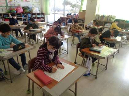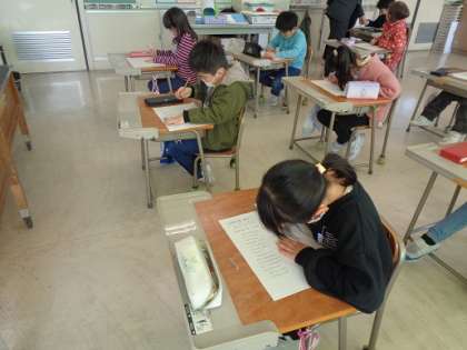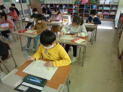 感想文を丁寧に書写する練習をしています。落ち着いて真剣に学習に取り組んでいます。
