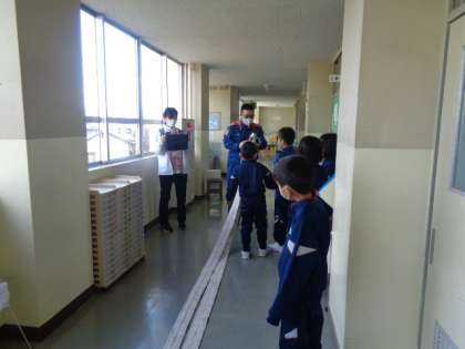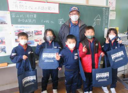 富山北消防署和合出張所から消防士の方をお呼びし、お話を聞きしました。