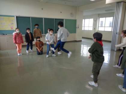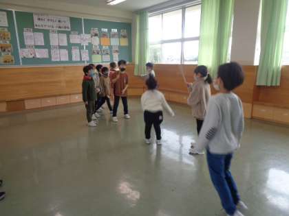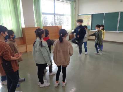 卒業を祝う会で6年生との対戦に向け、長縄特訓中です。