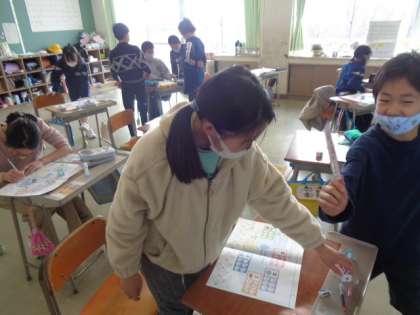 水とわたしたちのくらしとのつながりについて、簡単なゲームを通して考えています。