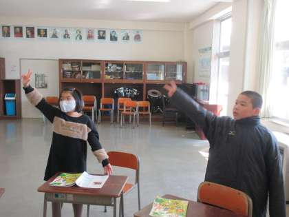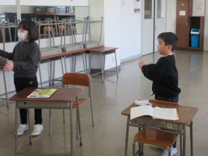 合唱曲「にじ」を手話を交え、体を動かしながら歌いました。