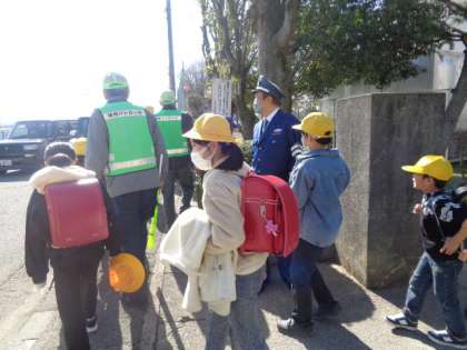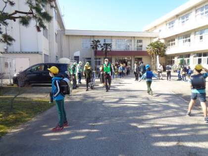 集いの後は、安全パトロール隊の方々と一緒に集団下校を行いました。無事故の日々が続き、大切な命が守られ続けられることを願います。