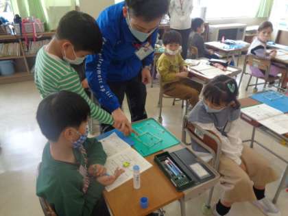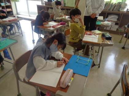 箱のつくりである辺や頂点の数や関係などを、実際につくった図形で確かめています。学習したことは、しっかりとノートにまとめています。