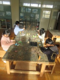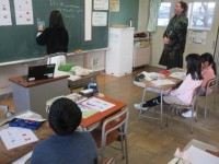 校舎内に3年生の作ったオブジェが登場していました。段ボールを巧みに利用した作品が、素敵な空間を作り出していました。