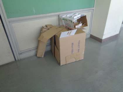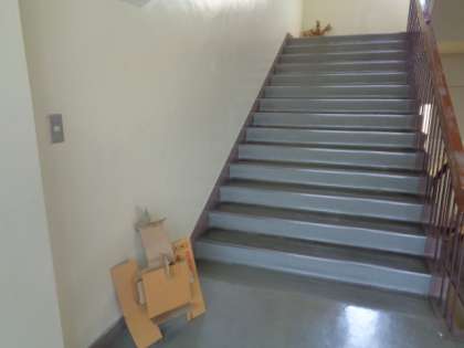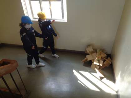 校舎内に3年生の作ったオブジェが登場していました。段ボールを巧みに利用した作品が、素敵な空間を作り出していました。