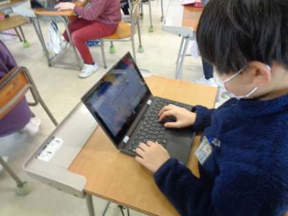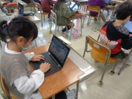 早く作業が終わった人から、タイピングの練習をしています。子供たちの技能の習得や上達の早さにはびっくりさせられます。