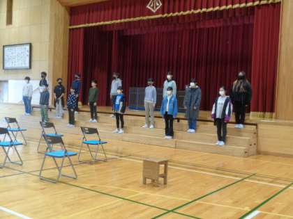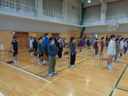最初で最後の全体練習。入退場や、喜びの言葉、歌の練習をしました。卒業式に向けた気持ちも高まってきました。