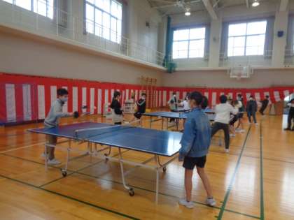 いろいろな場面で一緒に活動してきた5・6年生。卓球を通して、更に交流を深めました。