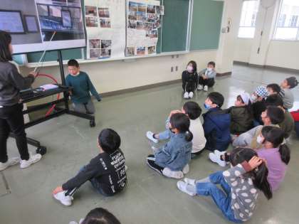 1・2年生にむけて作成した資料をもとに八幡小学校のいいところを発表しました。