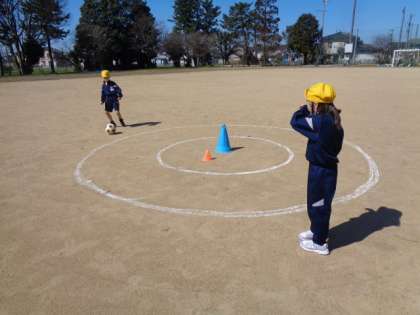 体育館からグラウンドへと場所が変わった的当てゲーム。グラウンドが広い分、正確さが求められるようです。
