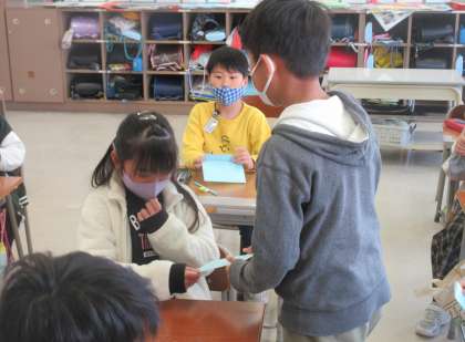 2年生の国語科の最後の学習は、友達にすてきなところを手紙に書いて伝えます。共に過ごしてきた中で見えた友達のよさを手紙にしたためました。