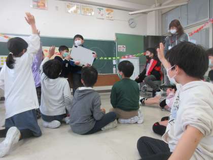 絵本クイズの次は、〇×クイズです。学校に関係のあるクイズを出しました。