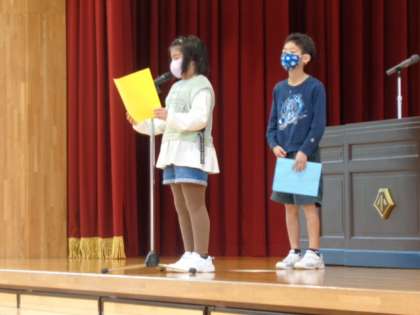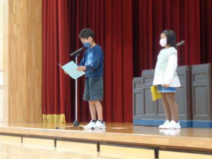 代表の人たちが3学期に繰り返し練習してできるようになったことや、来年度に頑張りたいことなど、落ち着いて発表しました。