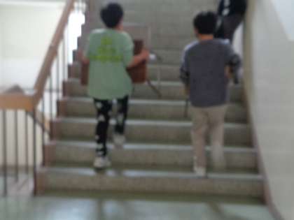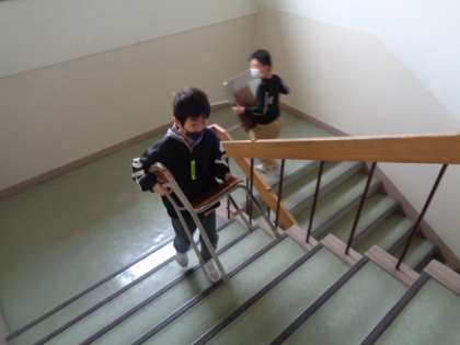 来年度のクラスの移動に備え、机・椅子を移動しました。ここでも大活躍の4・5年生でした。