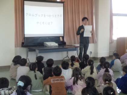 みんなが生き生きと楽しい学校生活を送ることができるように、1日の過ごし方のルールを見直しました。朝の活動、給食や休憩中の過ごし方、クロムブックの使い方などについて、各担当の先生方のお話をしっかり聞いていました。みんなで続けていきましょう。