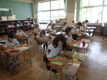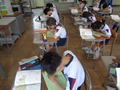 詩の模写を行っています。姿勢良く書いていると集中し、字もきれいになってなってきます。