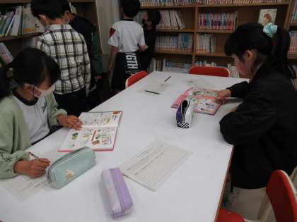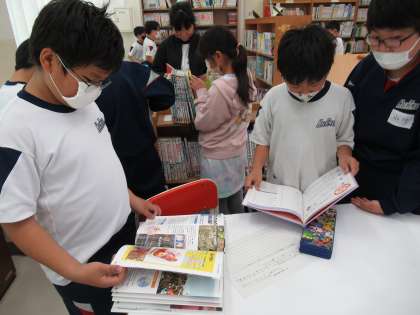 ということで、まずは図書室の本を使って環境問題やエコについて調べました。