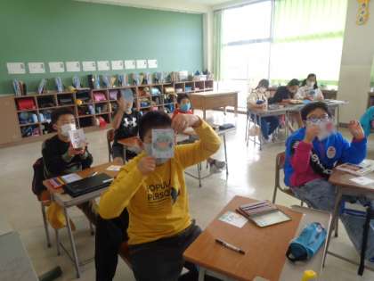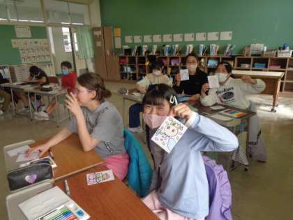 偶然を生かして、左手で、絵描き歌でなど、いろいろな描き方にチャレンジしています。歌だけを聞いて描いた絵が、一人一人全く違うことに驚いていました。