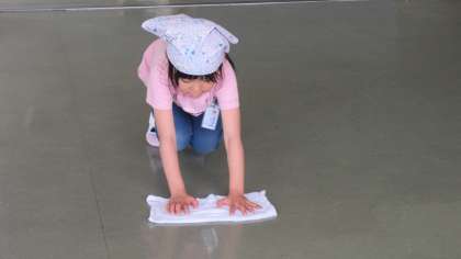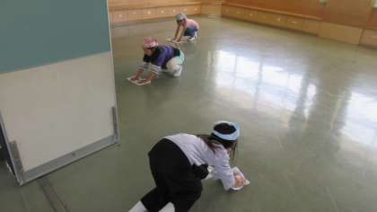 高学年のお兄さんお姉さんや先生に掃除の仕方を教えてもらいながら真剣に取り組みました。