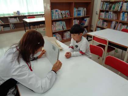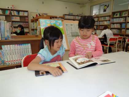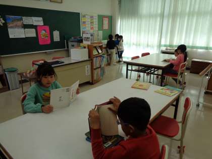 図書室で好きな本や気になる本を手に取り、友達と読んだり、先生に読んでもらったりと楽しく過ごしました。
