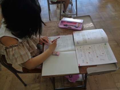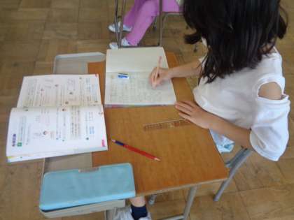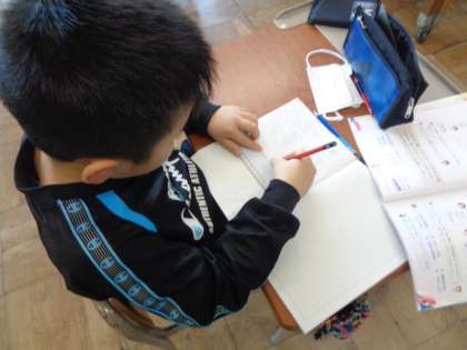 学習課題やまとめを色鉛筆で色分けしながら、丁寧にノートにまとめています。