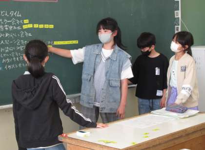 今日は、おむすび学級会を行いました。役割分担をした後、子供たちで話合いを進めます。