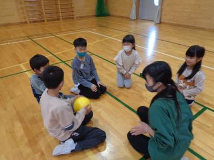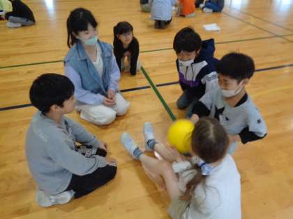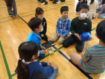 爆弾ゲームでボールを回しながら、楽しく触れ合いました。