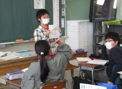 友達の考えたオリジナルの漢字を楽しんだり、感心したりしていました。