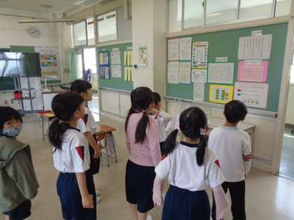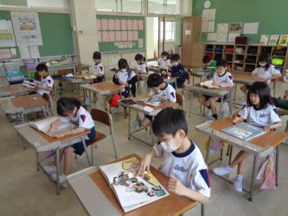 素敵な朝は、素敵な1日の生活リズムのスタートとなります。朝の歌に合わせて、校歌の練習をする1年生。静かに読書をする2年生。日直を中心に自分たちで朝の会を進める3年生。素敵な1日の始まりです。
