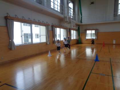 運動会でペアを組む学年でリレーの練習をしました。バトンをしっかりとつなげることができるように、これから練習を積み重ねていきます。