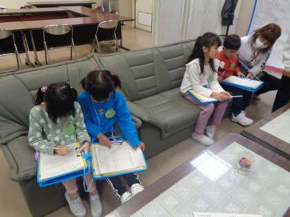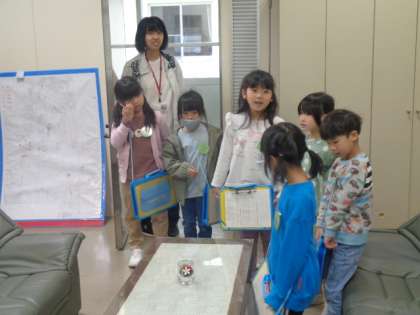 1年生が学校探検で、再び校長室を探検しました。部屋に飾ってる額や花に興味津々。校長先生にもたくさん質問しました。「失礼しました」「ありがとうございました。」の返事もよくなりました。