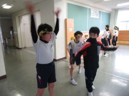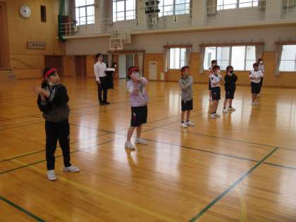 今日は、結団式がありました。5年生は、6年生のサポートとして教えてもらったダンスを他の学年に教えてました。