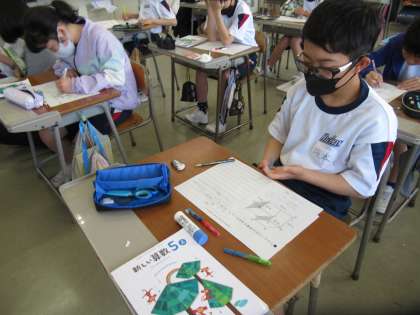 算数科では、立体の体積を求める学習をしています。今回は、一部が欠けている変わった立体の体積を求める問題に取り組みました。
