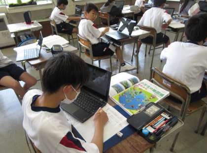 社会科では、国土の地形の特色について学習しています。今回は、教科書にある9枚の写真から自分が行ってみたい所を選び、その土地について調べました。