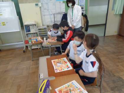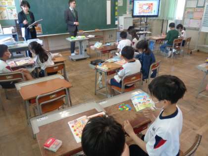 ALTの先生の発音のよく聞いて、数当てゲームをしています。「12」と「20」どちらかな?