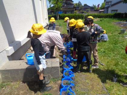 地域の岡本さんに教えて頂きながら、野菜の苗を植えました。畑に植えたのは自分で選んだ野菜の苗、植木鉢に植えたのはミニトマトです。しっかりとお世話をしながら大切に育てたいです。