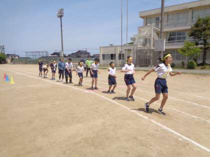 徹底してバトンパスの練習をしています。スピードを落とさずにバトンをつなぐことができるかがポイントになってきます。
