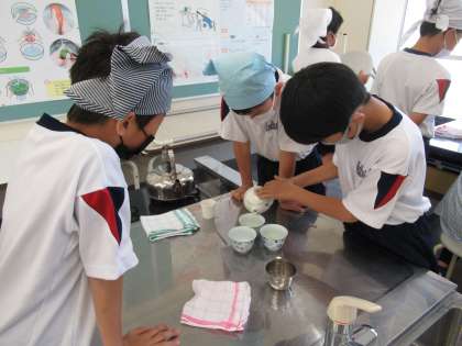 準備やお湯をわかすときは、本当に安全に気を付けて真剣に活動していました。片付けのときに集中力が切れてしまうことがあったので、終わりに近づいても落ち着いて活動できるようにがんばっていきます。