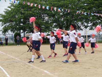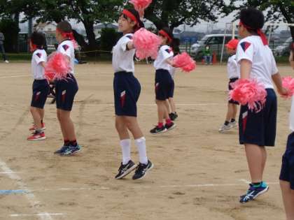 運動会の華、応援合戦。今年度は、全校児童によるリズムダンスに加え、かけ声に合わせた応援も復活しました。