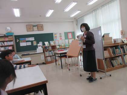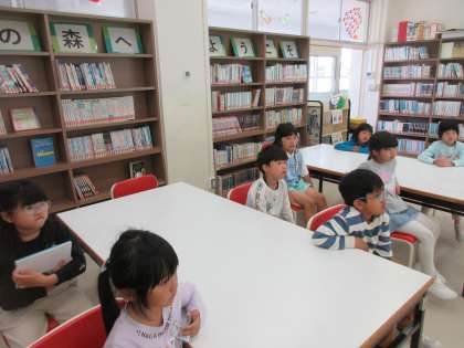 図書室で、司書の先生に本の読み聞かせをしてもらいました。