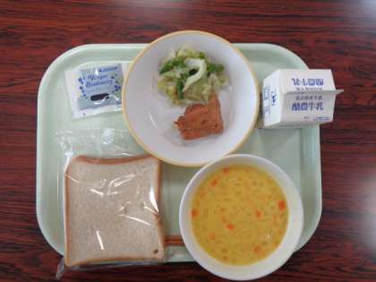 5月23日(火) 今日の給食 公開日 2023/05/23 更新日 2023/05/23 給食室から 今日の献立は、食パン 照り焼きチキン かぼちゃポタージュ イタリアンサラダ ブルーベリージャム 牛乳 でした。
