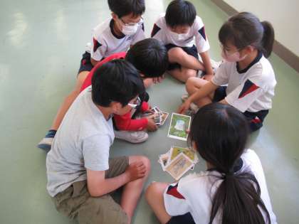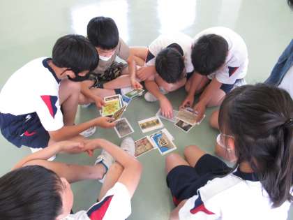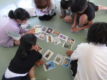 図画工作科では、アートカードを使ったゲームをしました。いろいろな絵や写真のカードをグループ分けをするゲームです。