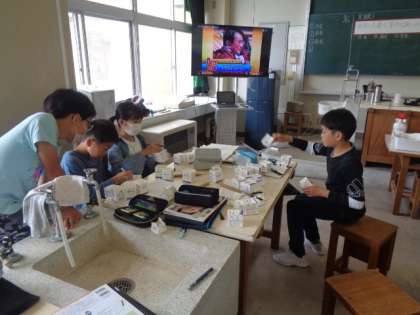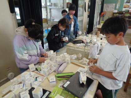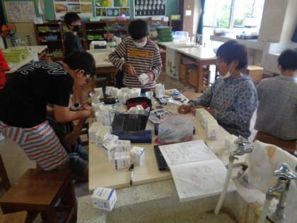 発芽に必要な条件を調べる実験方法で、教科書に出ている3つの条件以外にたくさんの意見が出され、それらを調べるための実験準備をしています。